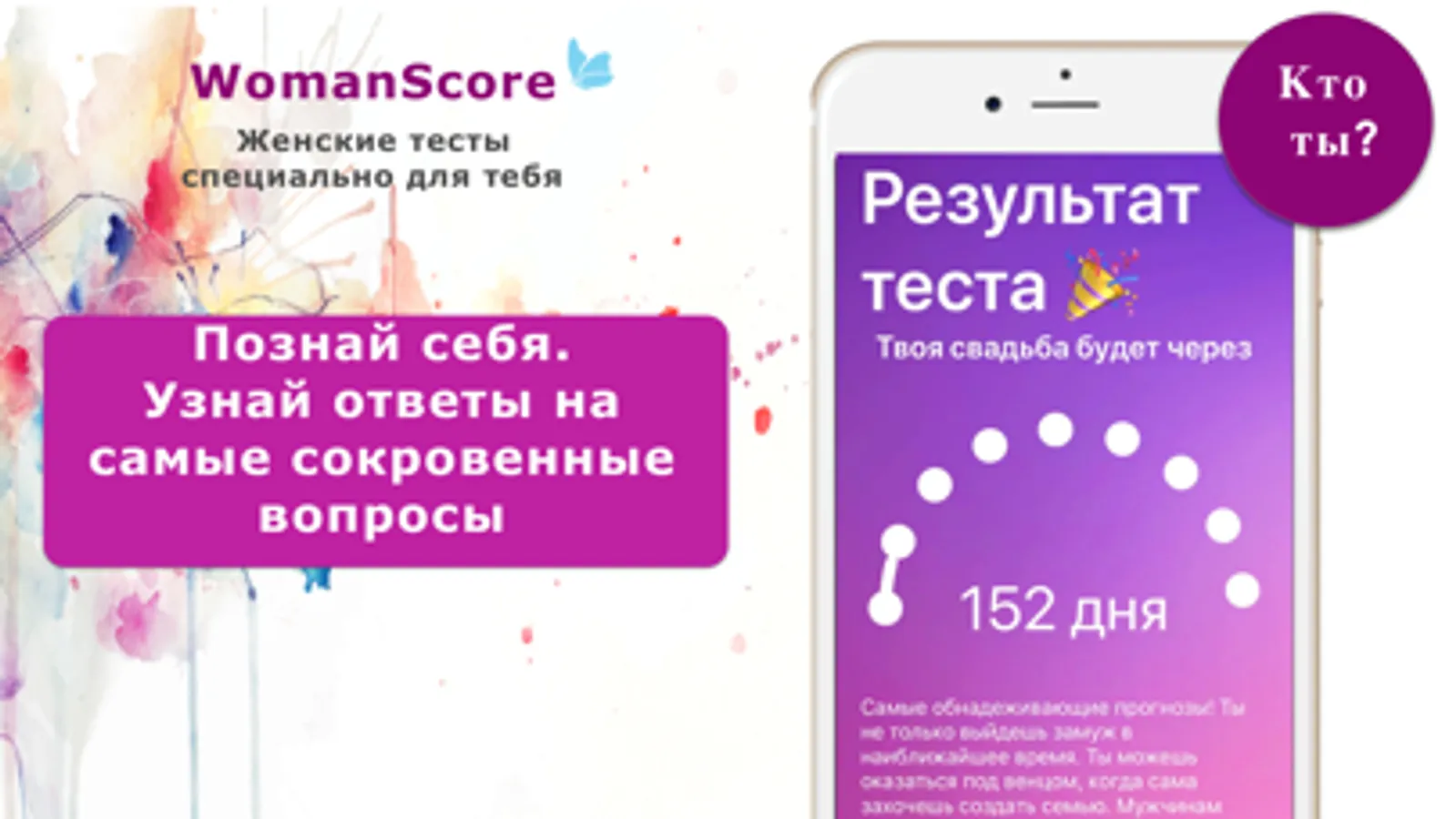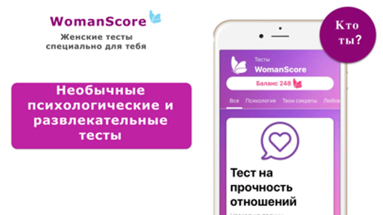 WomanScore - это тесты специально для тебя. У тебя будет прекрасная возможность лучше узнать себя, свои сильные и слабые стороны.