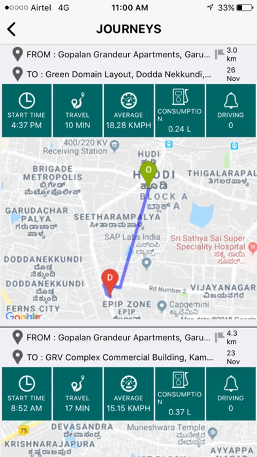 Yatis gives you a dashboard on your mobile and desktop to monitor different engine and driving parameters including fuel consumption. The graphs and charts give you an understanding of which trip was fuel efficient, which was not.