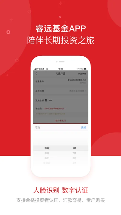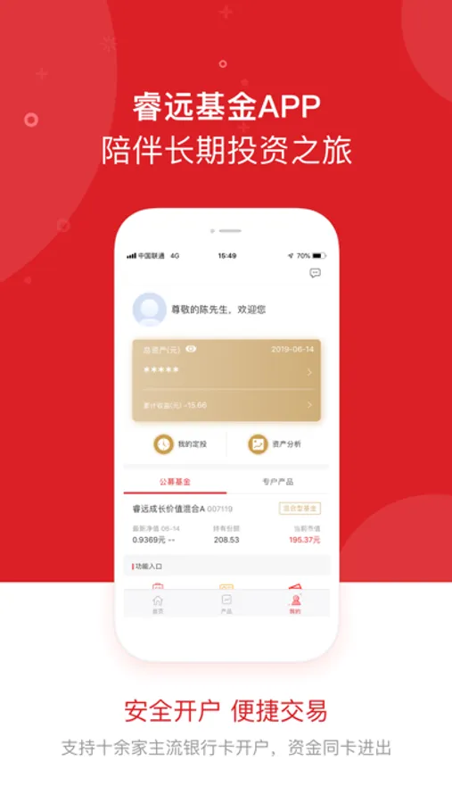 睿远基金APP支持主要银行卡开户交易、资产查询,投资全程陪伴。
