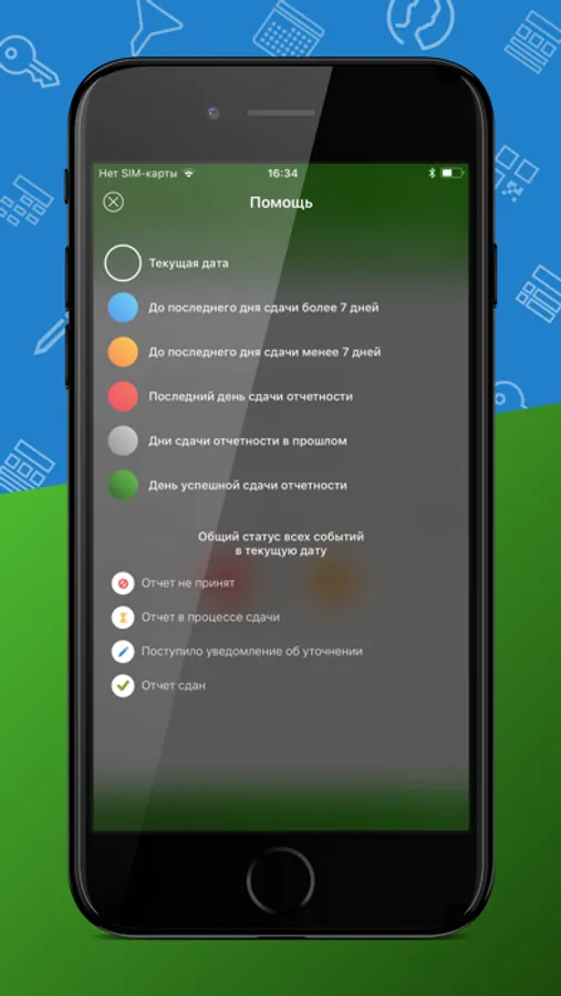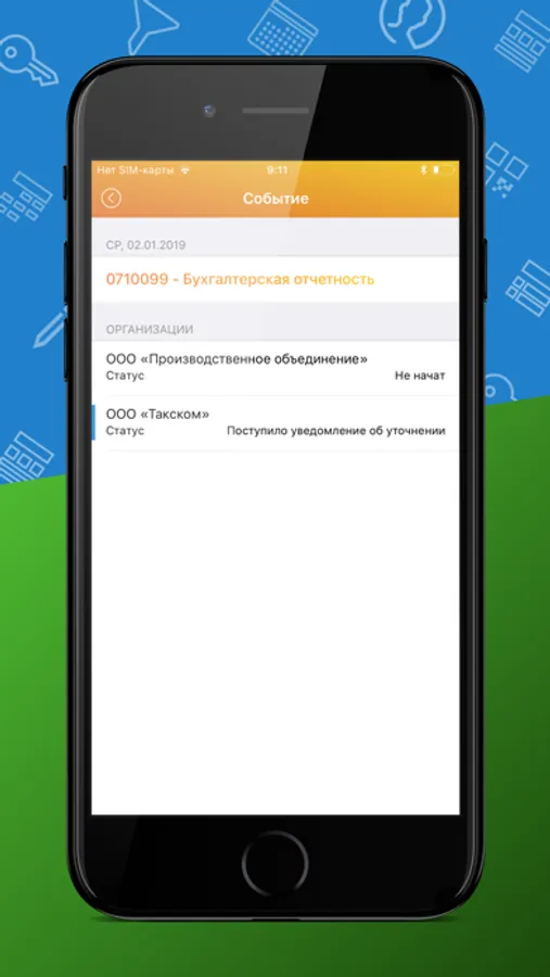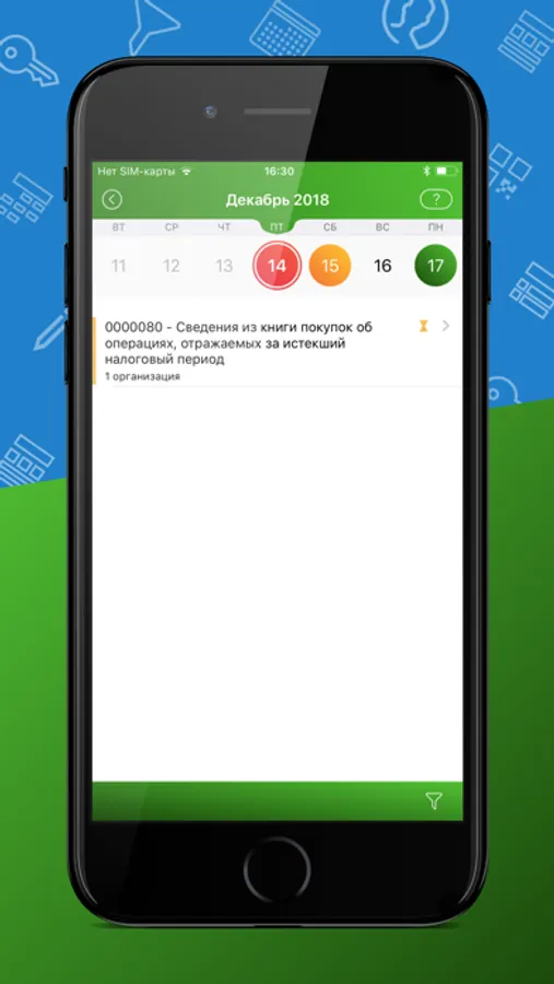 Приложение отмечает все важные даты сдачи отчетности и уведомит о приближающихся сроках.