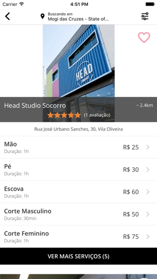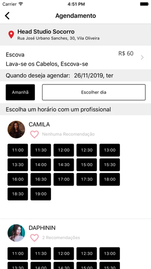 Na busca, você pode escolher seu profissional preferido, serviço, o melhor horário e data de forma rápida e prática.