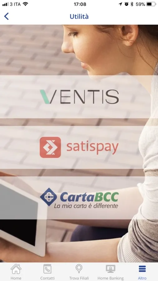 • Accedere a tutte le informazioni UTILI, quali Contatti, Blocco Carte e News