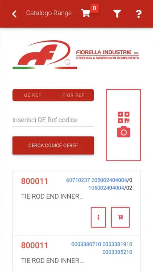 La ricerca del codice prodotto potrà essere effettuata anche scansionando con la app il codice a barre identificativo.