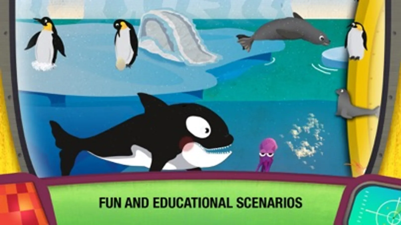 • Play and learn with different marine animals: octopuses, crabs, sharks, turtles, jellyfish, seahorses, penguins, orcas, seals, remoras, starfish... And many others.