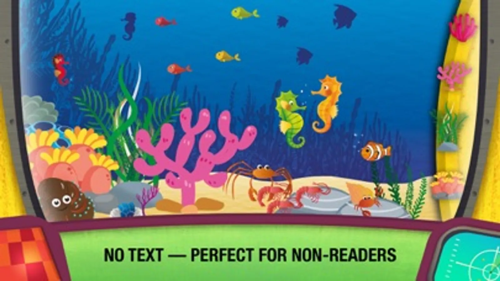 With "What’s in The Oceans?" you can play and learn freely, with no pressure or stress. Play, observe, ask questions and find the answers. Explore how animals interact with each other, how they live, how they defend themselves and how they reproduce.