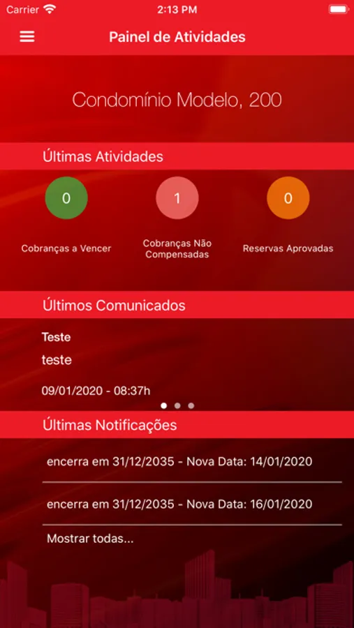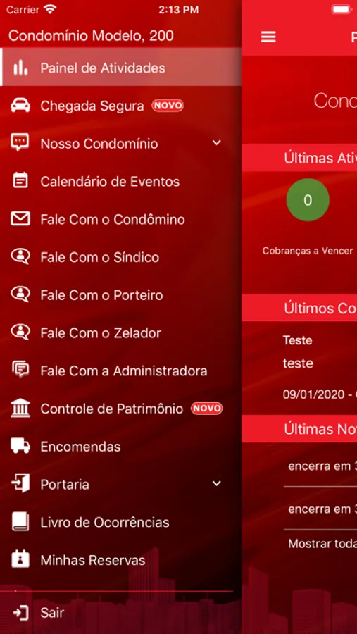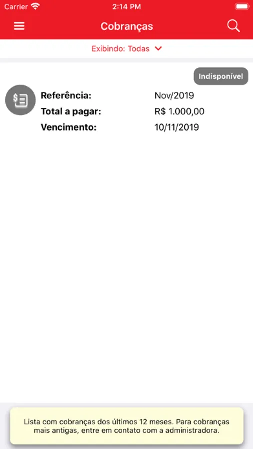 Visualizar cobranças em aberto da sua unidade e obter 2ª via de boletos (com recálculo automático de multas e juros);