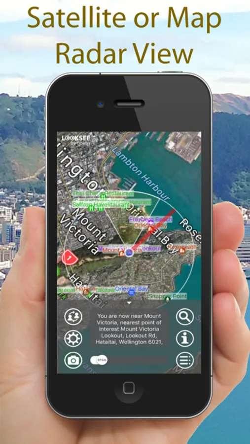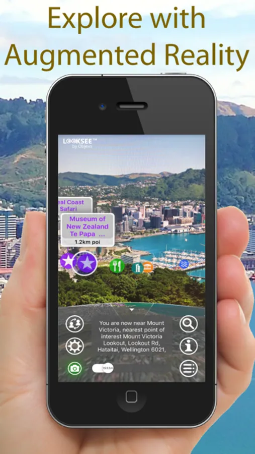 Looksee AR for Wellington, North Island, New Zealand is an Augmented Reality (AR) viewer used to find places of interest upto 10km away directly within your phone's camera view and add fun, knowledge and interest to your adventures and tours.