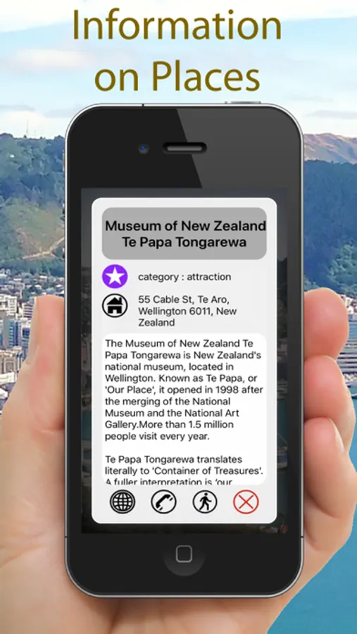 All towns and districts within the region are covered including Porirua, Lower and Upper Hutt, Lake Ferry and Wainuiomata to name but a few. In fact there are around 2,000 places of interest viewable within the App including the Parliament Building, Wellington Museum and Wellington Zoo.