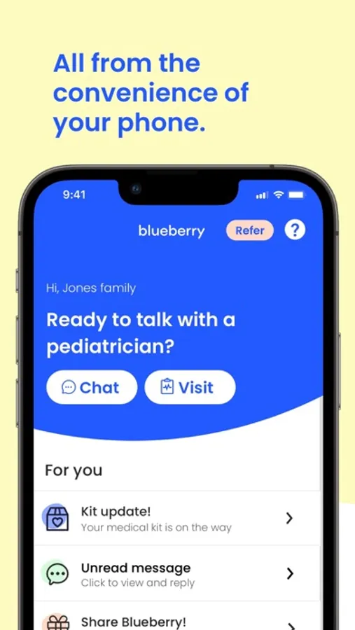 Experience the future of pediatric care. Blueberry members get 24/7 access to pediatricians who provide advice, urgent care, treatment, and even prescriptions when necessary for hundreds of childhood illnesses and symptoms.