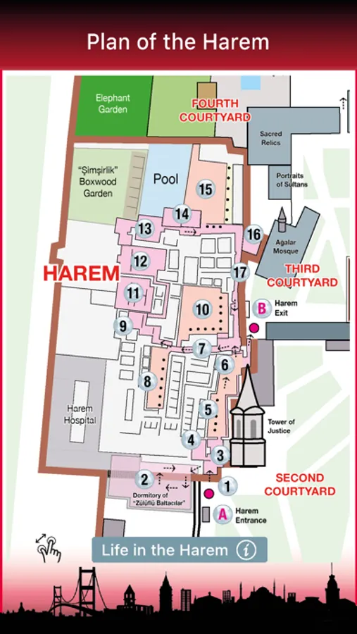 2- A detailed, hand-drawn schematic plan of the Topkapı Palace Museum.
