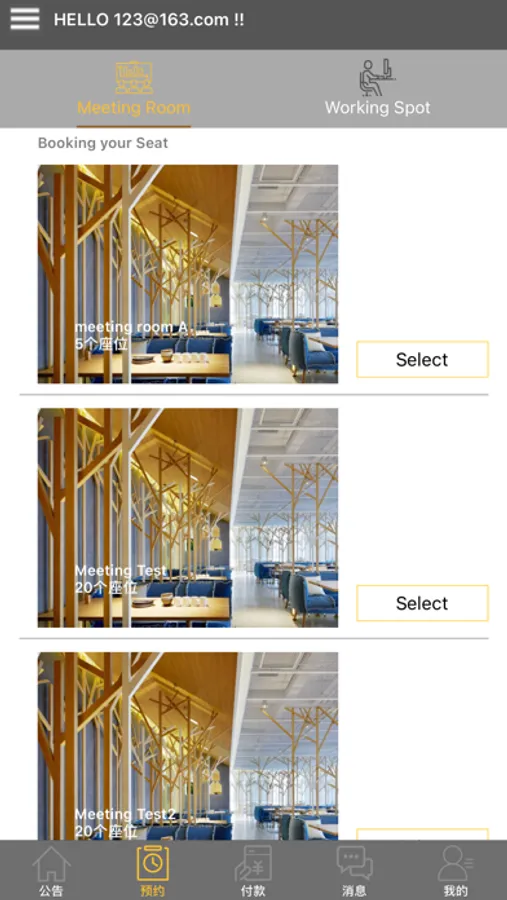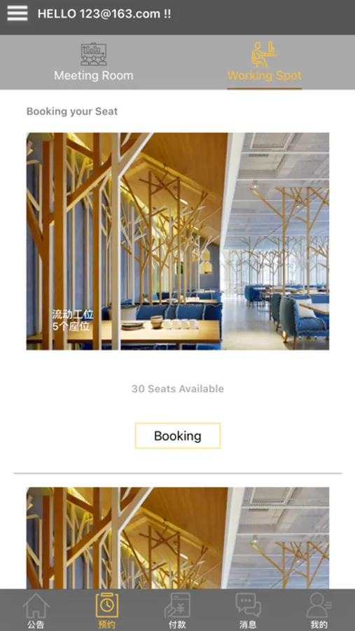 “共享空间” 是一个展示活动,公告等信息的平台,以及提供给用户一系列便捷式共享空间内服务,例如预约办公室、工位等。