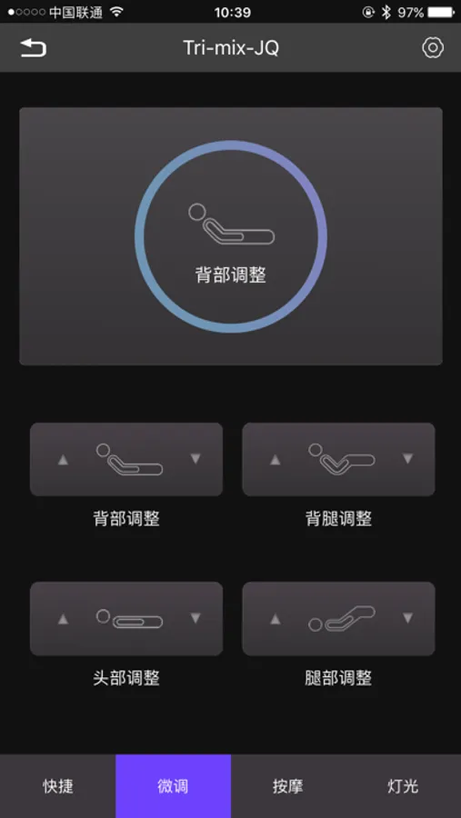 微调功能,头部、背部、臀部和腿部,可以单独动作;按摩功能,可以调整头部和腿部按摩器的振动频率和振动强度,并能设置按摩时间;