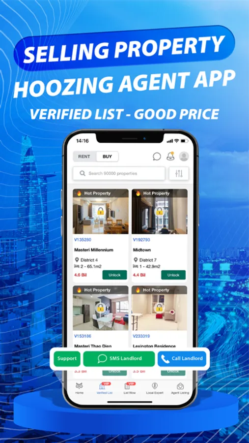 Easy find properties with list over 80.000 properties verified by landlord and Hoozing. They are always updated status daily. Moreover, agents can call landlords directly and free on App to set up meetings and make deals fastly.