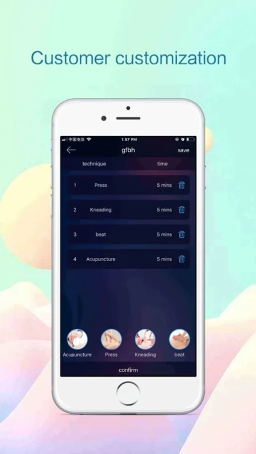 “Pocket Massage” is an app developed by Jiangsu Yancheng Minray Platinum Technology Co., Ltd., which is used with Bluetooth hardware devices. The pocket massager uses medium frequency plus frequency conversion, and seven intelligent methods are used alternately to help you relax your body anytime, anywhere. App can send the relevant instructions to control the massage device through the mobile phone Bluetooth, or you can customize the relevant massage techniques according to your preferences or symptoms, you can upload custom methods to the server for others to download and use.