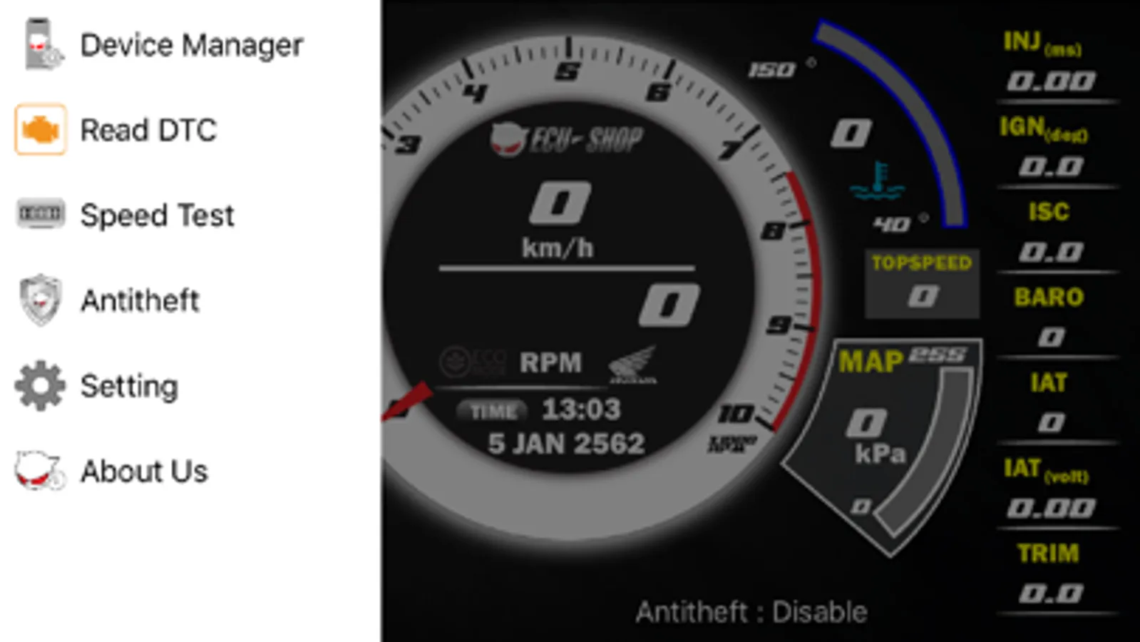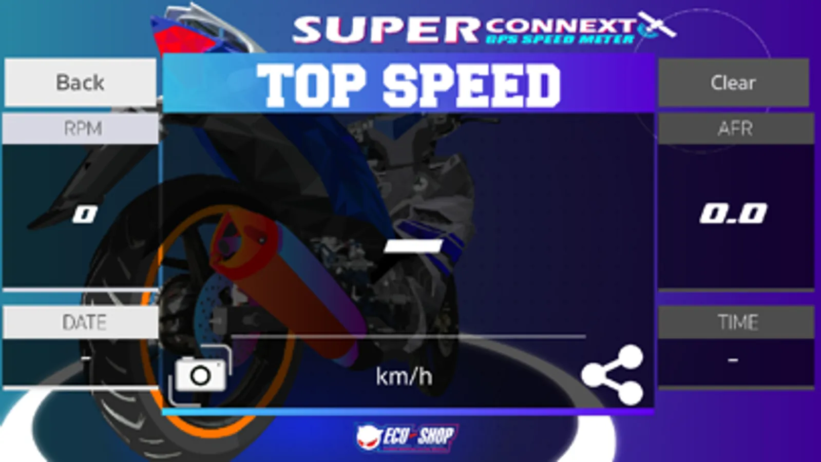 This app use with “ECU=SHOP Super Connext module” the Bluetooth motobike diagnostic tools to display real time data read and clear trouble code (DTC)