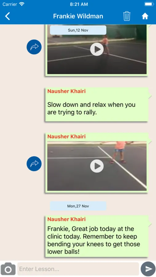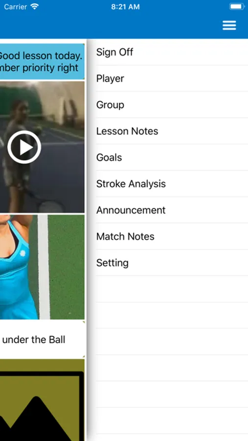 Trak3sixty is an app designed to aid the Coach and the player track his progress. Goals help define specific bechmarks that can marked as completed when it has been accomplished. Players can make indivual instruction notes.
