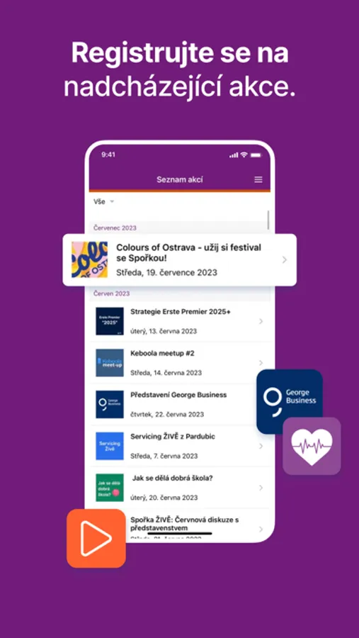 Spořka akce is an easy-to-use application for people taking part in Ceska sporitelna’s events. With it, you have all of the info about your event on you at all times. The application features detailed information about the event programme as well as the organiser’s contact details and through it, you can ask about anything that is of interest to you. The application is based on the Happenee event platform.