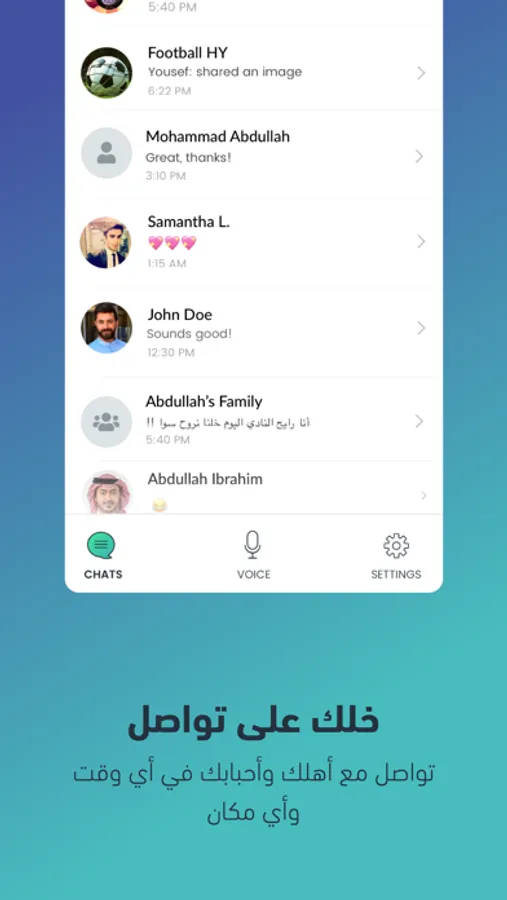 ارسل واستقبل محادثات وسجل صوت مع أهلك وأصحابك.
