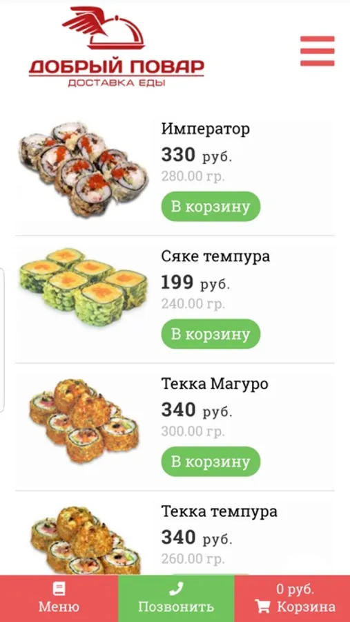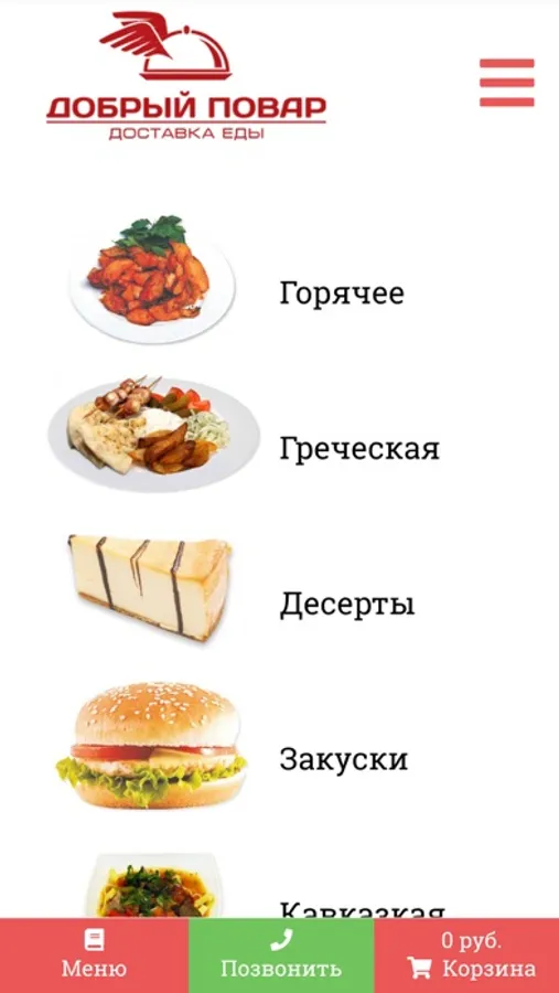 Доставка еды Добрый повар В меню «Доброго повара» Вы сможете насладиться горячей, ароматной, безумно вкусной пиццей с разнообразной начинкой. Также Вы можете отведать восхитительные салаты и горячие блюда. Наши блюда готовятся только после принятия Вашего заказа.