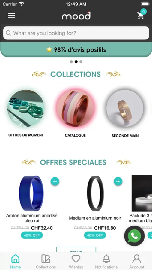 Grâce à l'application mood, vous pouvez accéder aux dernières nouveautés, commander de manière sécurisé et recevoir votre bague à domicile !