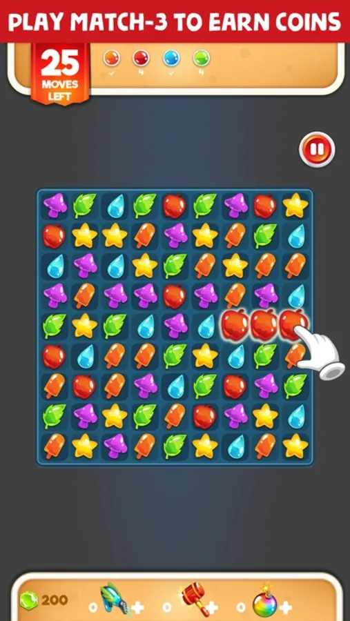 • Earn coins for FREE by playing match 3 game.