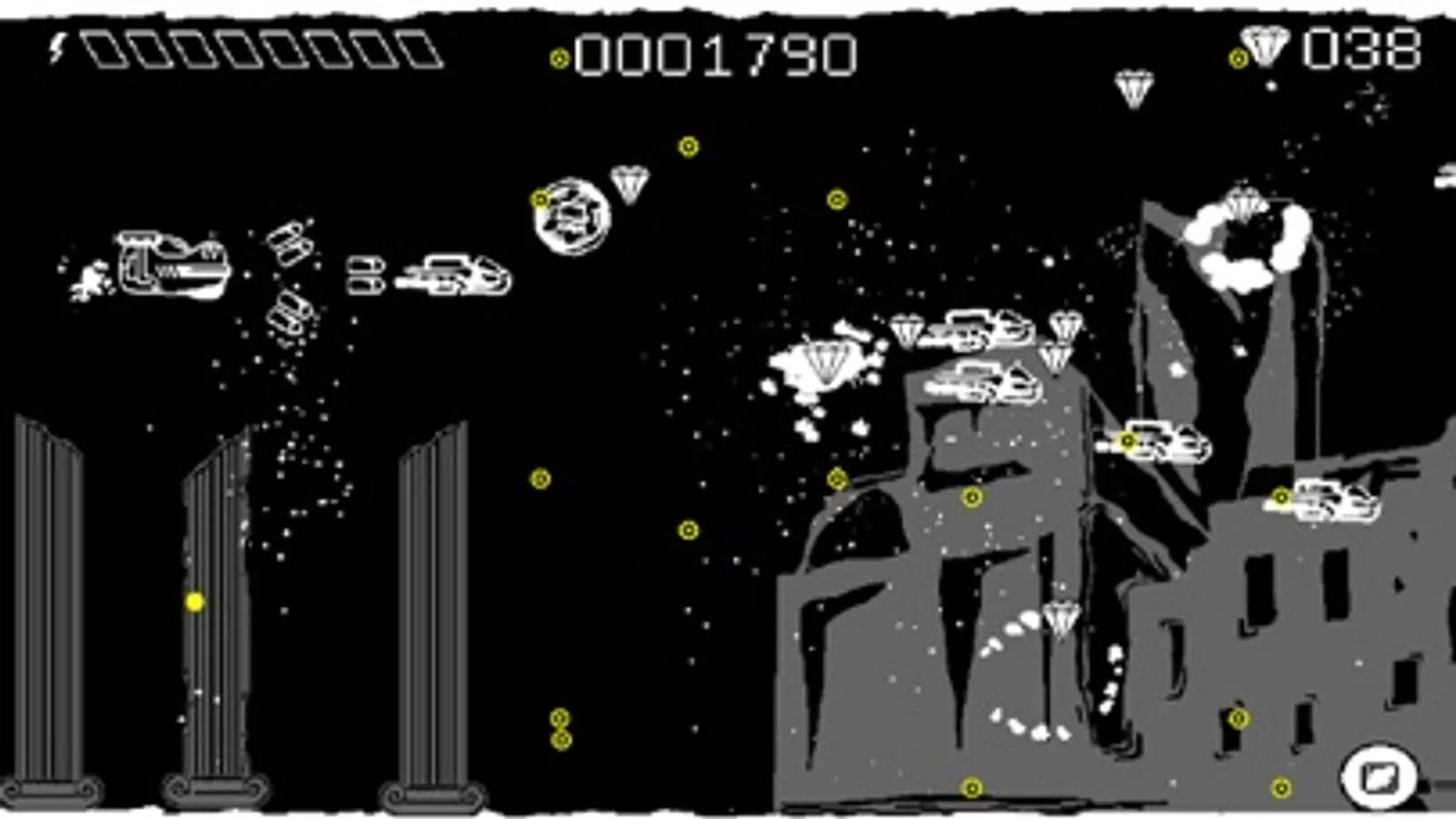 It’s almost monochrome shooting game.To make the game more transparent, additional colors have been added (enemy shots and background).