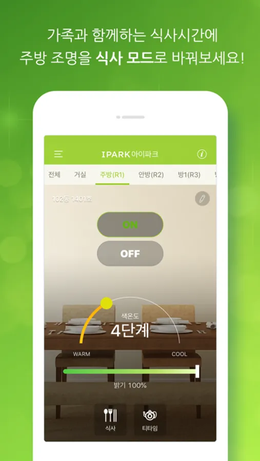 [스마트 조명] 모바일APP은 모바일폰을 통해 집안의 분위기를 편안하고 밝게 연출할 수 있으며, 제공된 모드로 쉽고 빠르게 분위기로 바꿀 수 있습니다.