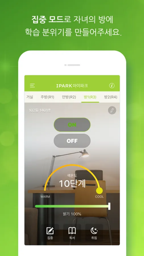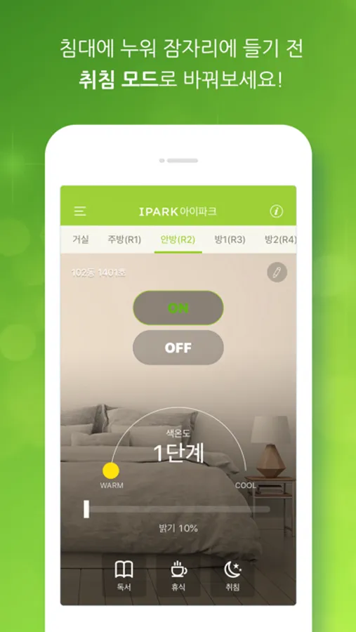 - 거실: 독서, 휴식, 영화, 사용자모드