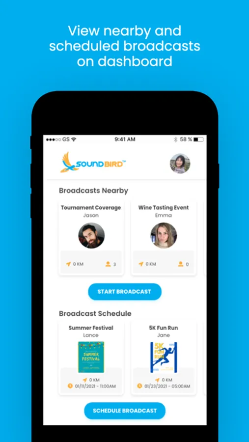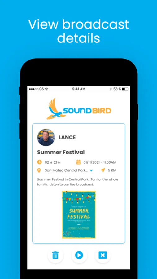 Use the SOUNDBIRD app at an outdoor event, to guide a tour, to give a speech, or any situation where there is an audience with phones. The app is location and profile based. No links needed.