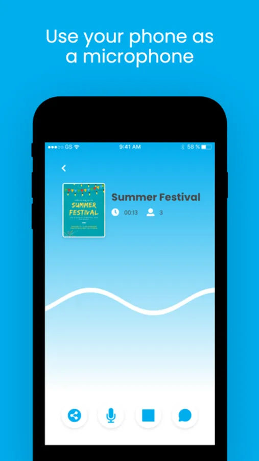 Use your phone as a microphone and the phone's of your audience as speakers. Broadcast your voice to nearby phones.