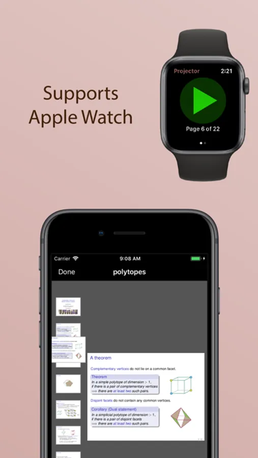 Projects PDF slideshows onto an external screen. If you have an Apple Watch, you can also use it as a remote control.