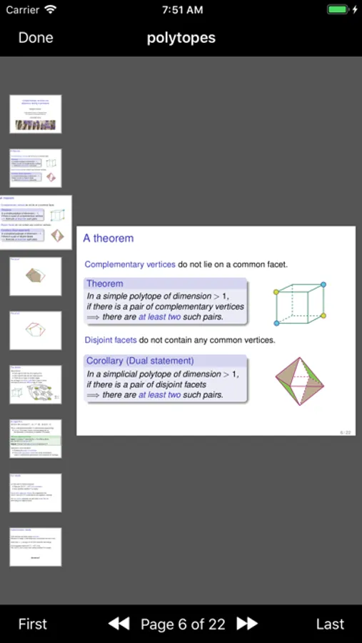 You can navigate on your iPad or iPhone by tapping and swiping, or using the buttons on the toolbar, or scrolling through the thumbnails, or using an external keyboard. When in landscape mode, you will also see a preview of the next page (which you can turn on/off using the button on the upper toolbar).