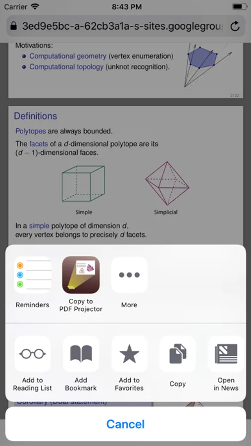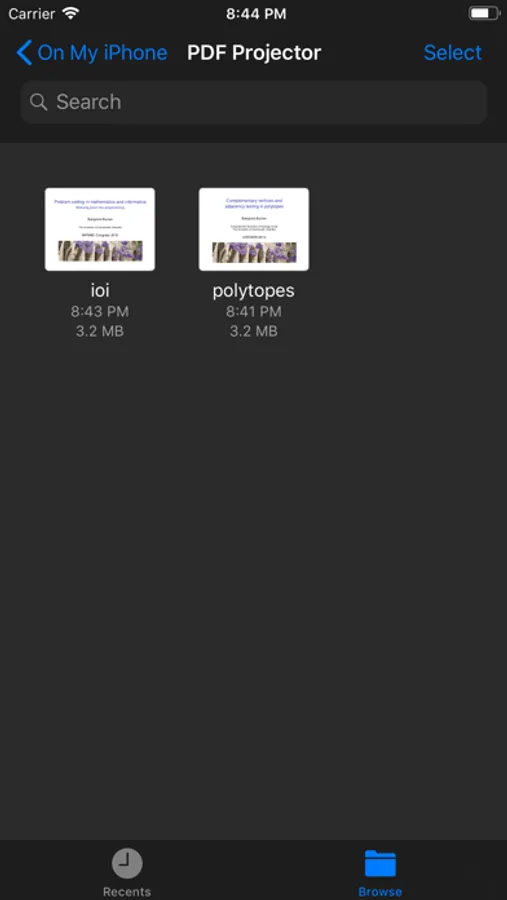 You can browse and open any of your iCloud documents, or you can share PDFs from your favourite app to open in PDF Projector.