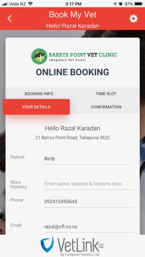 - Lock in your favourite Vet Clinic and Branch