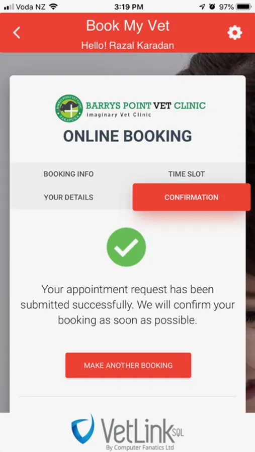 VetLinkSQL "Book My Vet" App is a complementary Add-on product to our market leading Online Booking Module that allows clients to book their own appointments.