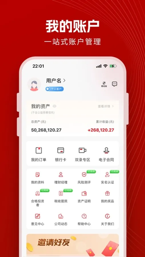 4、账户查询:查询个人存续及已清算的全部资产,查阅产品管理和信息披露报告;