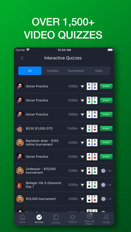Our interactive hand quizzes provide instant feedback from our top-level coaches with over $74 million in combined poker earnings.