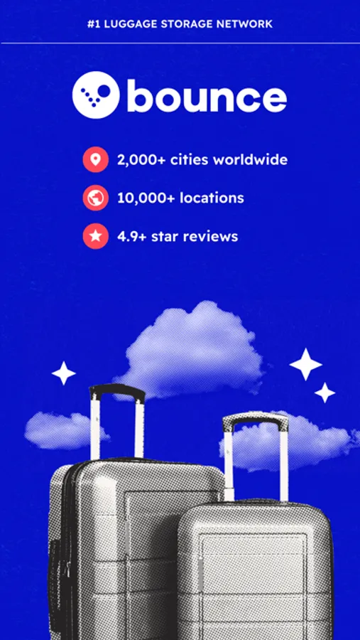 Bounce is the worldwide luggage storage app. Find a place to leave your bags on any block of the city! Never waste time dragging your things around with you again. Live life light.
