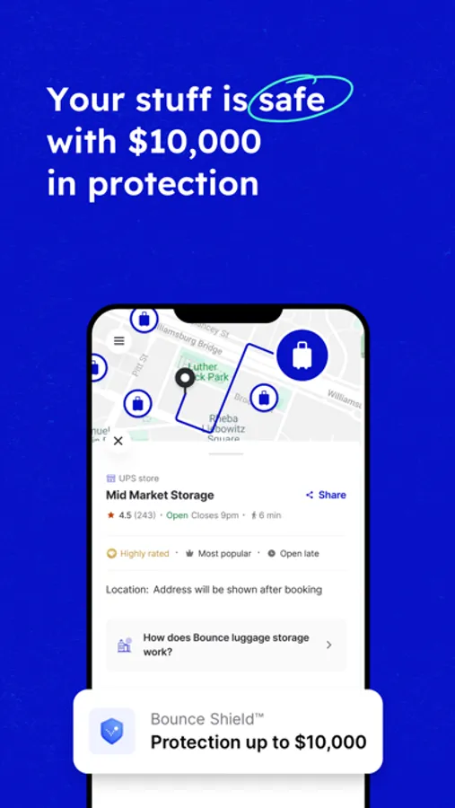Featured in Forbes, TechCrunch, CBS, and NBC, Bounce has 1000+ storage locations in more than 250 cities worldwide and offers fully insured storage.