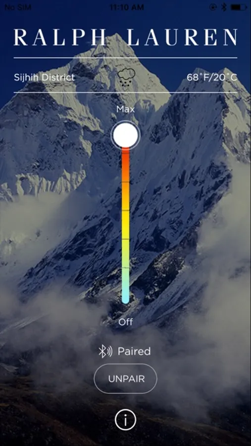 RL Heat is the exclusive app for Ralph Lauren’s groundbreaking RL Heat technology, a thermal regulation system for the Polo 11 and Glacier jackets that allows the wearer to customize heat levels based on current conditions.