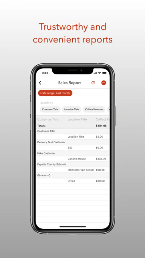 With Gimme, you can generate custom reports for your operation, such as sales reports, commissions reviews, and sales tax. Gimme also serves as the master record holder for all of your Products, Points of Sale, Customers, Equipment, and Users (Drivers), allowing operations to make global changes to products or customers from one app.