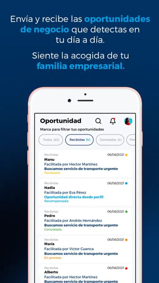 Una app para crear equipos de Networking, en los que los usuarios podrán ofertar sus productos o servicios en exclusiva a su equipo, generar y recibir oportunidades de negocio sobre posibles clientes, obteniendo ganancias, como suma de lo vendido directamente más lo recibido como recompensa por las oportunidades de negocio generadas con éxito.