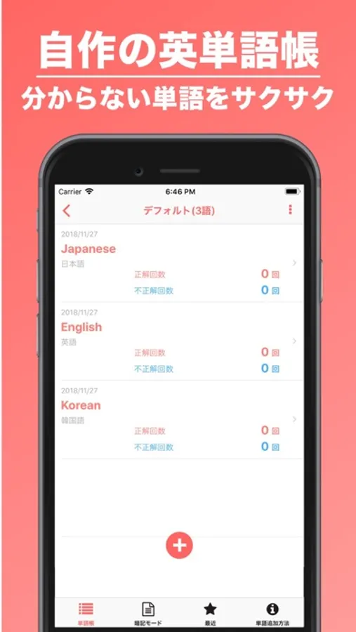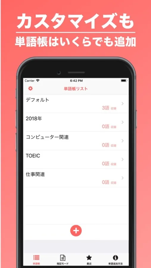 はじめはデフォルトの単語帳がありますが、皆さんの使い方に合わせてどんどん単語帳を追加していきましょう。