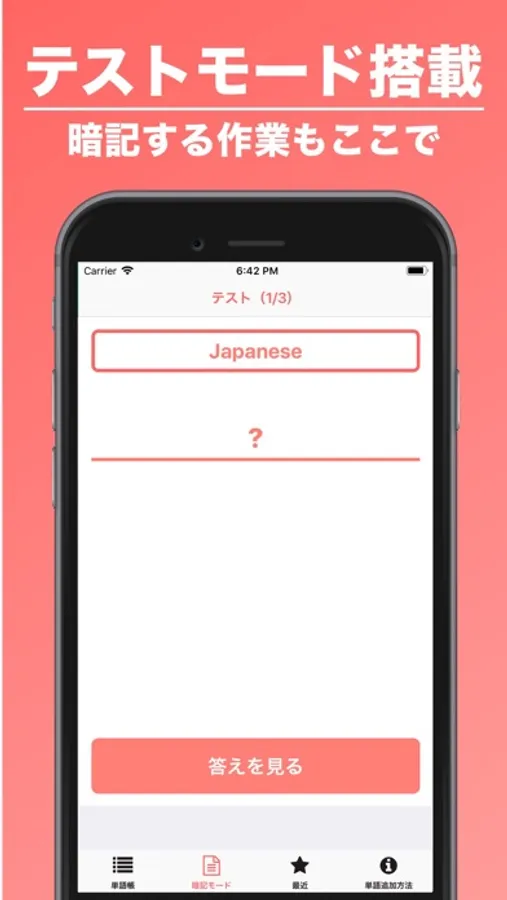 英単語帳は、もちろん作成しただけではだめです。暗記する作業も必要です。この暗記するという作業もこのアプリの中でできます。