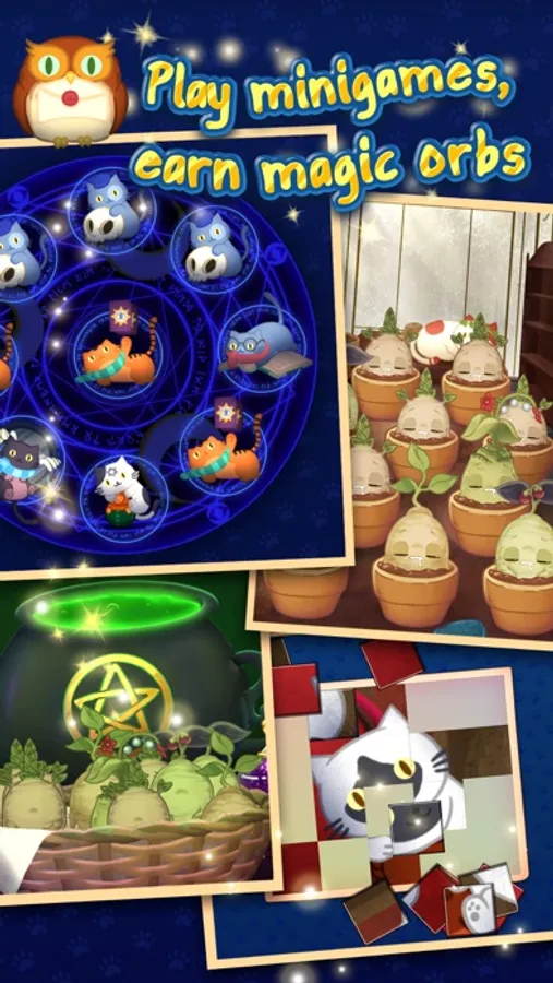 Cat Mansion, a mysterious place and forbidden for any human. You can decorate the place with magic items to lure the magic cats out and many more mini games in the mansion such as Mandrake Planting, Cat Jigsaw, etc.