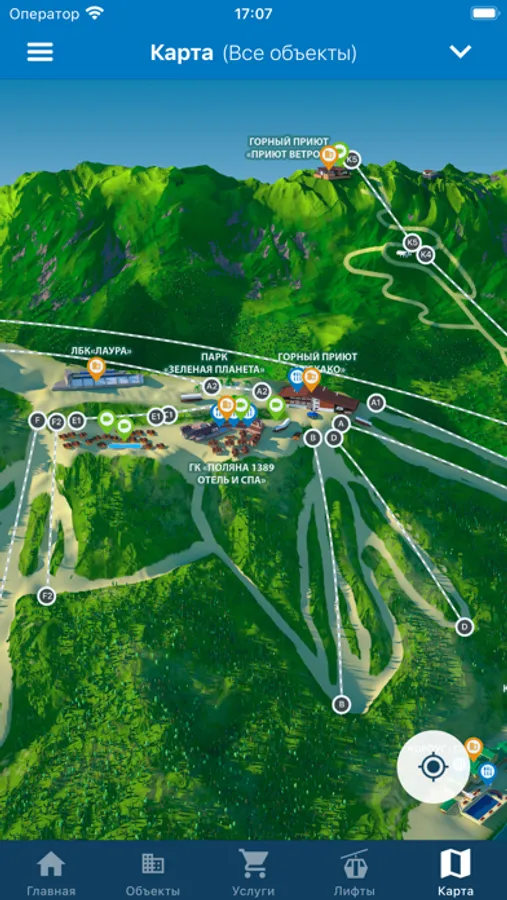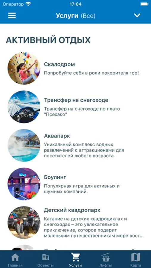 В приложении Горно-туристический центр «Газпром» вы всегда можете найти актуальную информацию об объектах, статусе работы канатных дорог, оказываемых услугах, купить ски-пассы и забронировать номер.