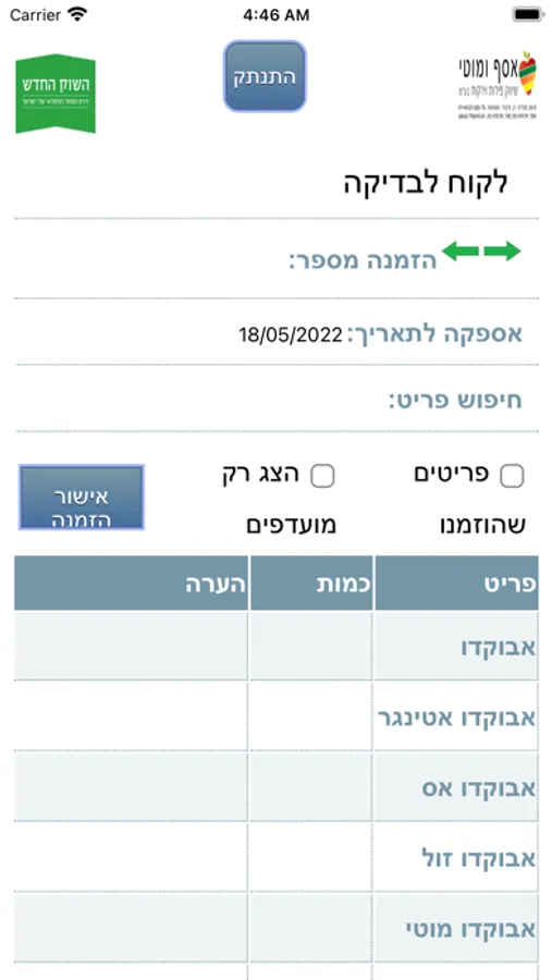 אפליקציה להזמנות עבור לקוחות של אסף ומוטי