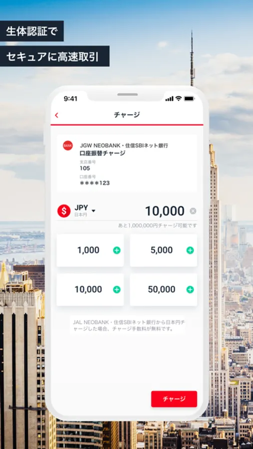 生体認証やパターン認証のご利用で、チャージや両替を便利でストレスフリーに行うことができます。