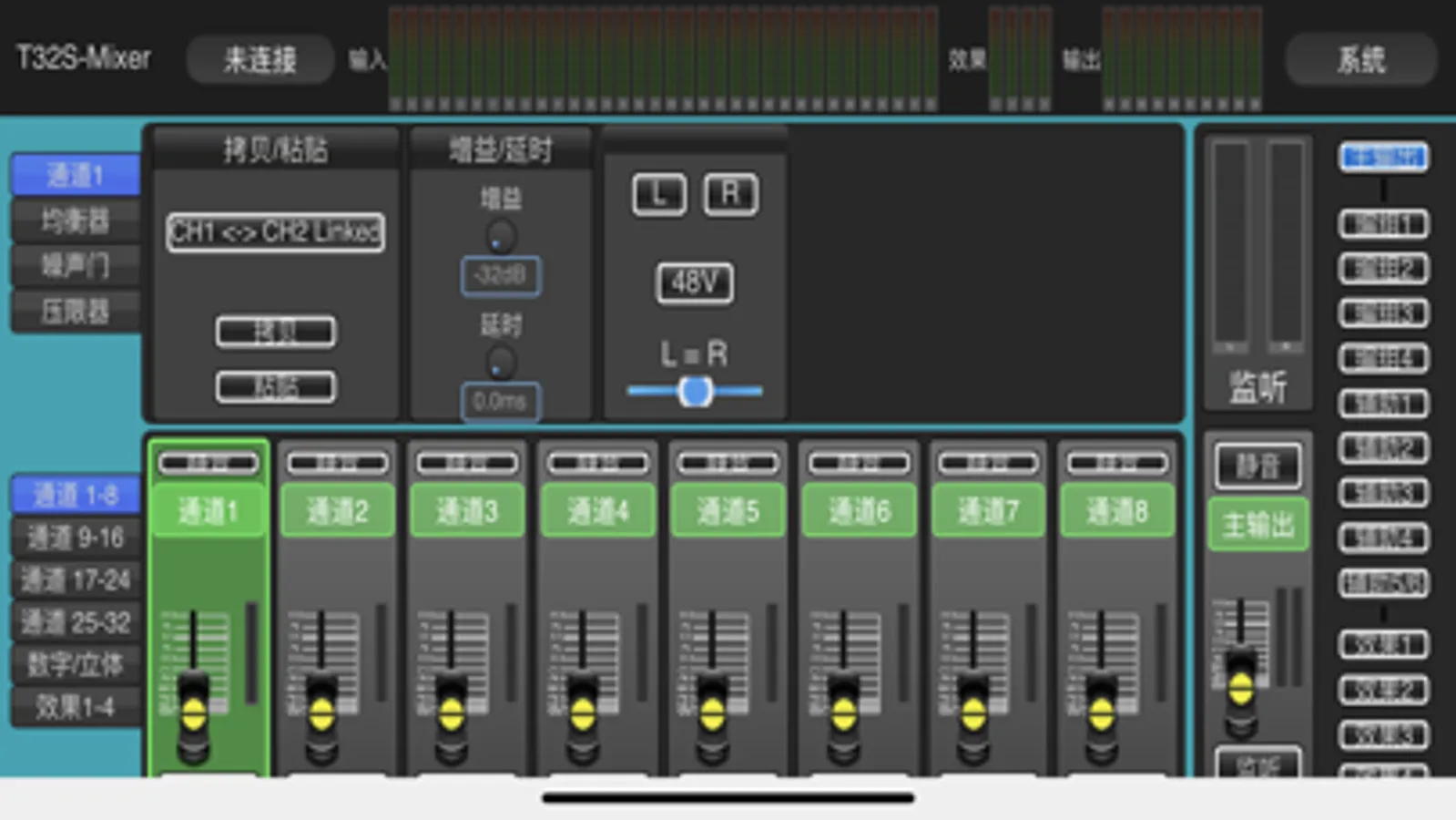 •32路信号输入(32路MIC输入1组立体声输入)