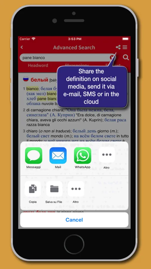 • Sharing the definitions using the features available in the device, such as social media, e-mail, SMS, etc.